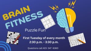 Starting in July, Adult Services will present Brain Fitness sessions for the residence of The Courtyard Apartments, featuring crossword puzzles, word finds, Sudoku, and other activities.
